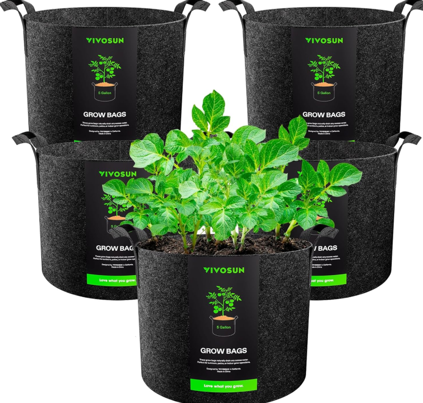 2️⃣ VIVOSUN 5-Pack Thickened Nonwoven Fabric Grow Bags